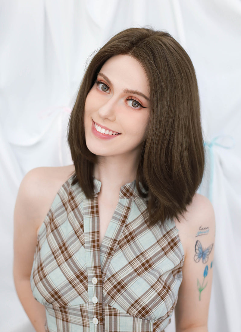 14" Medium Straight Brunette Lace Front Remy Natural Hair Wig HHW014