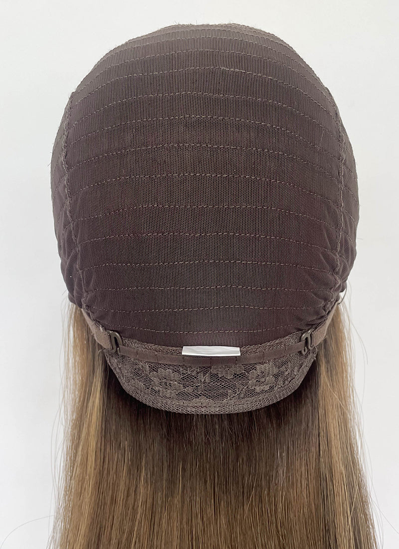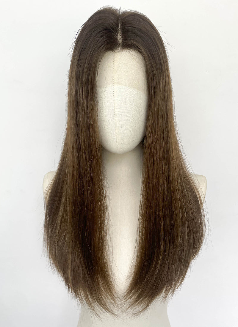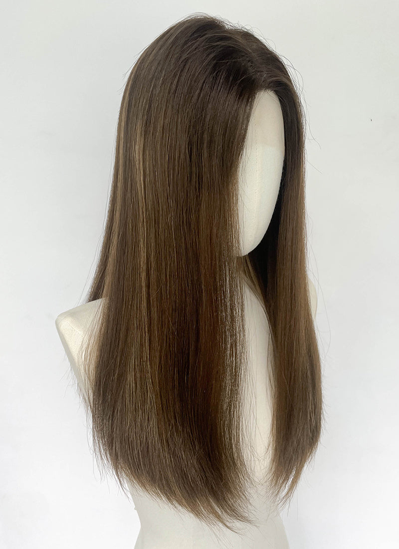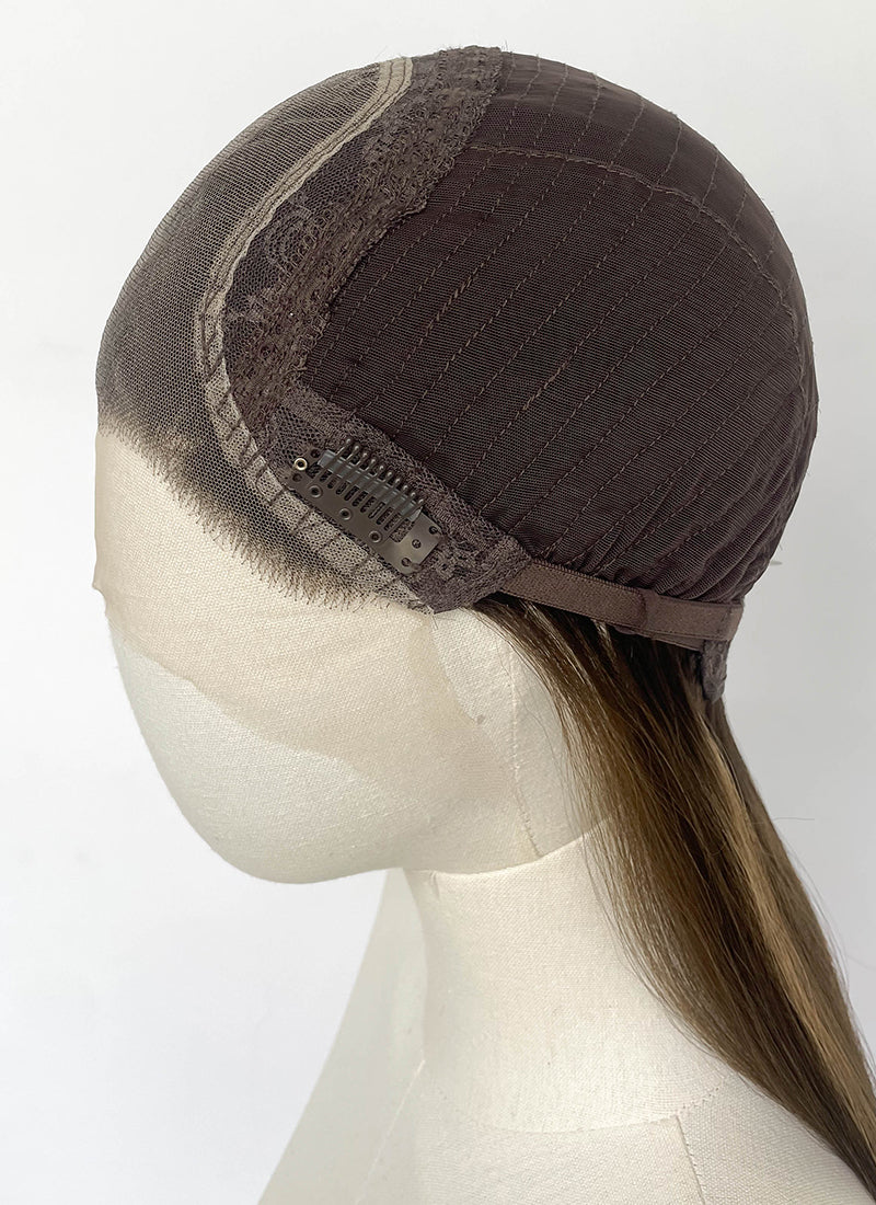 Linea| 20" Long Straight Brown With Highlights Lace Front Remy Natural Hair Wig