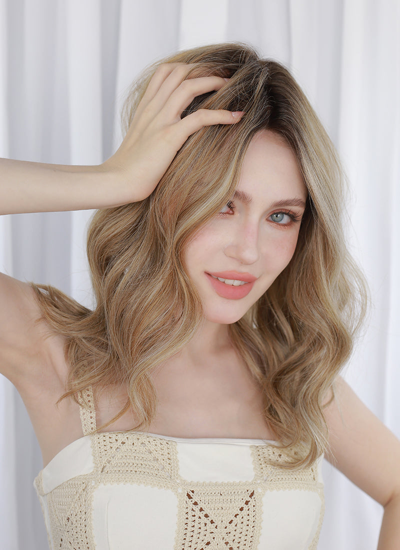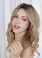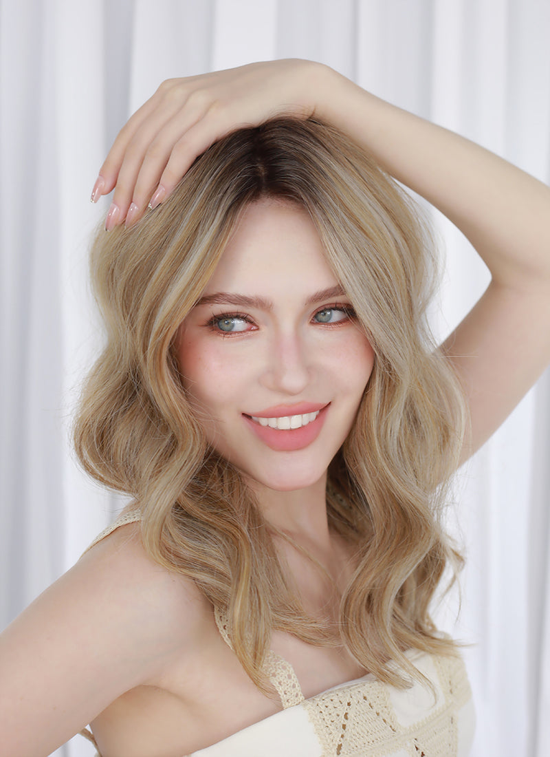 Mixed Blonde With Dark Roots Wavy Mono Top Lace Wig MN013