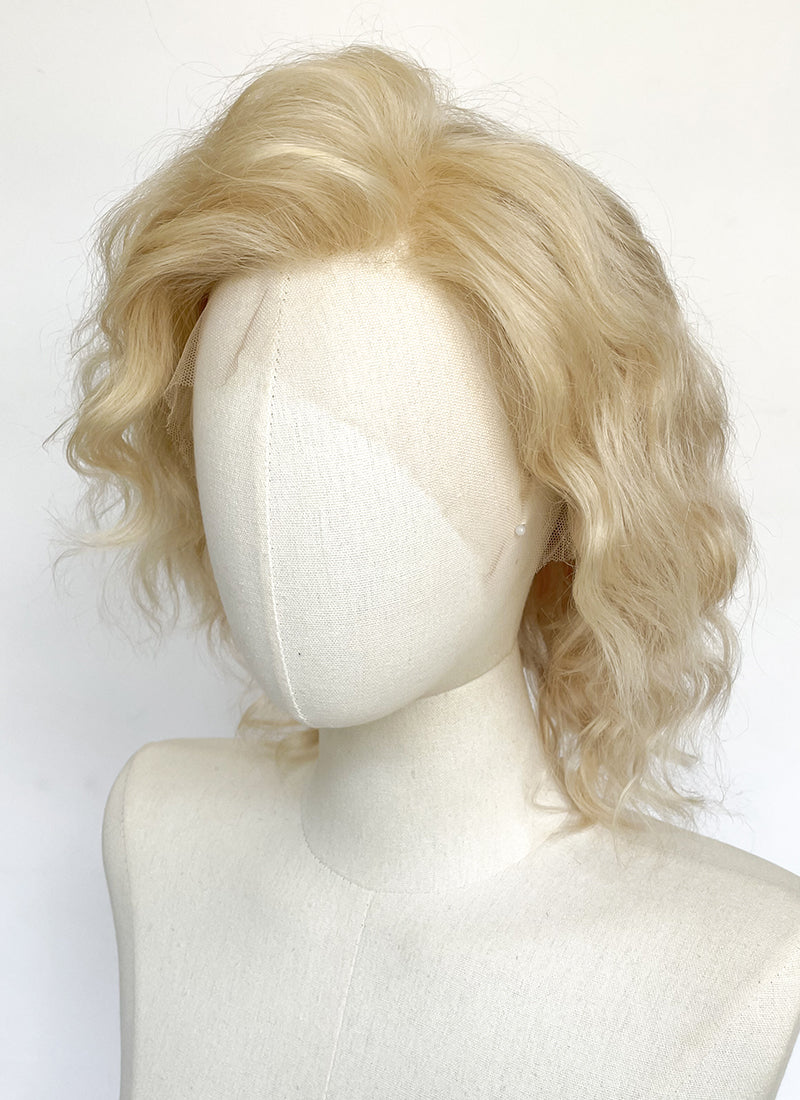 10" Medium Wavy Honey Blonde Lace Front Remy Natural Hair Wig HH205