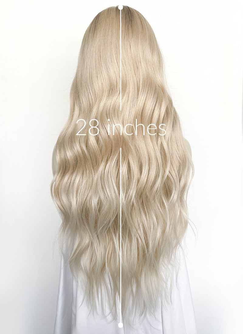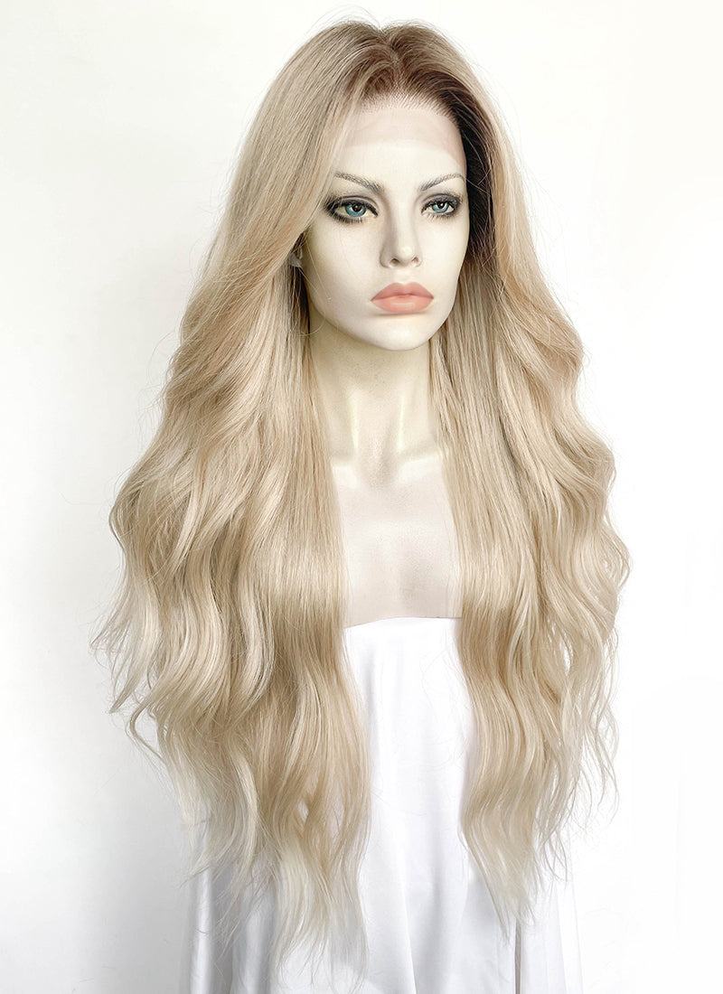 Blonde With Dark Roots Wavy 13" x 6" Lace Top Kanekalon Synthetic Hair Wig LFS053