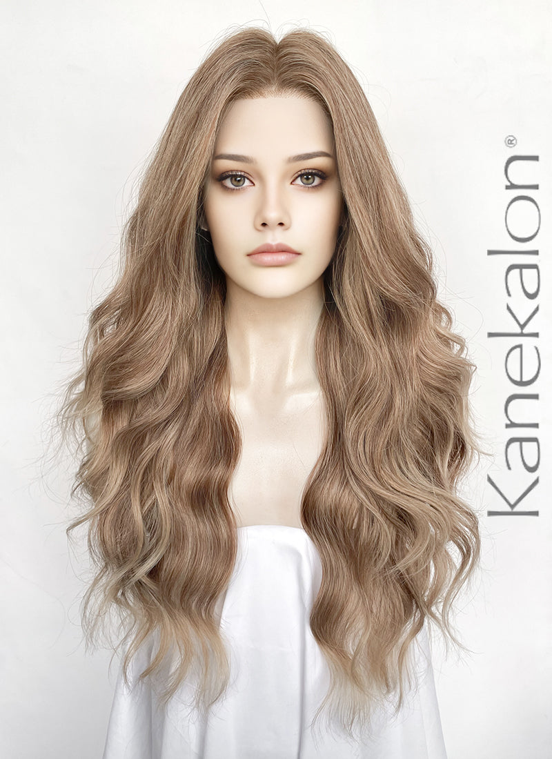 Ash Blonde Wavy 13" x 6" Lace Top Kanekalon Synthetic Hair Wig LFS058