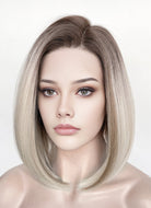Mixed Blonde With Dark Roots Straight 13" x 6" Bob Lace Top Kanekalon Synthetic Hair Wig LFS059