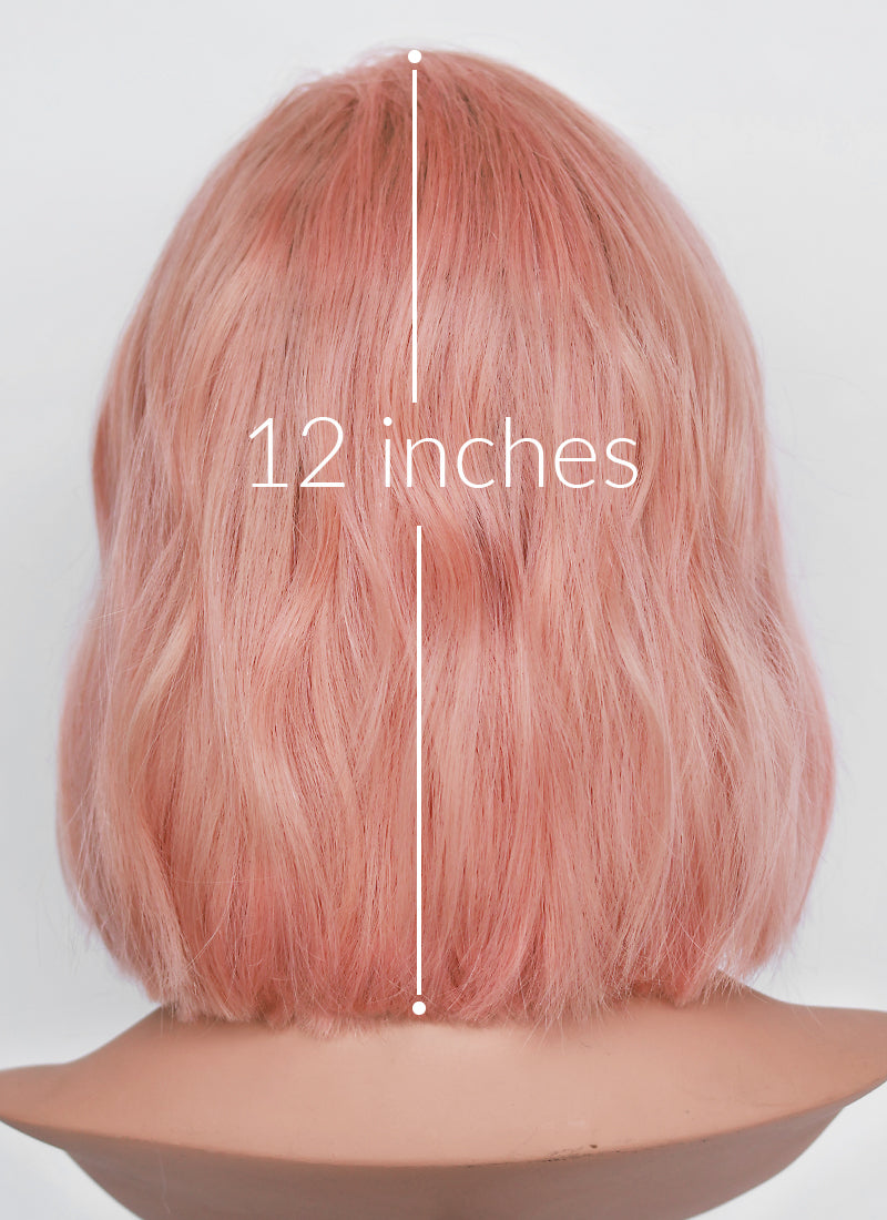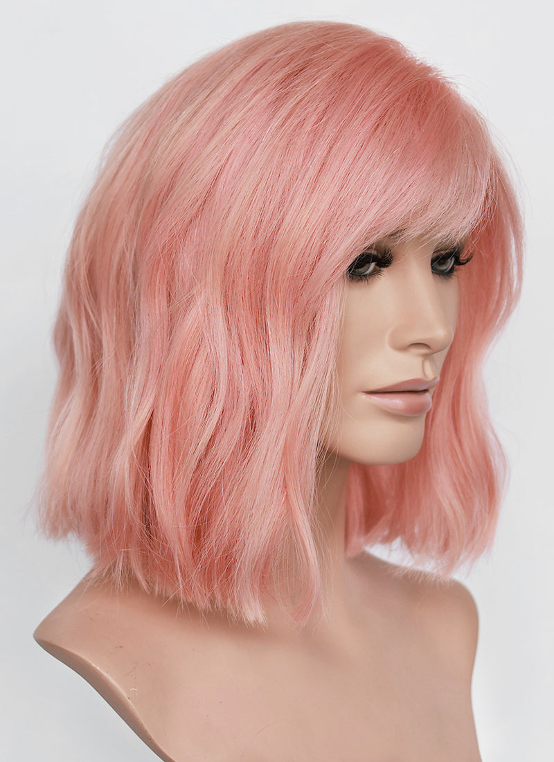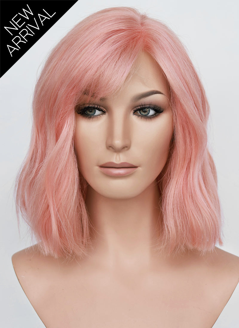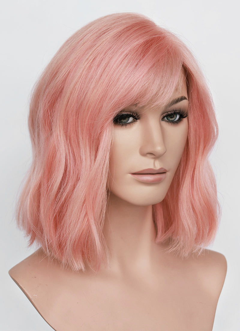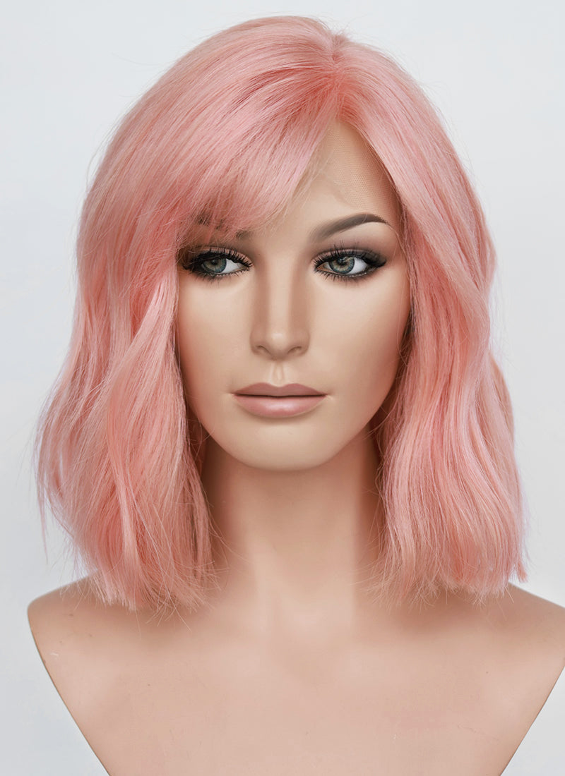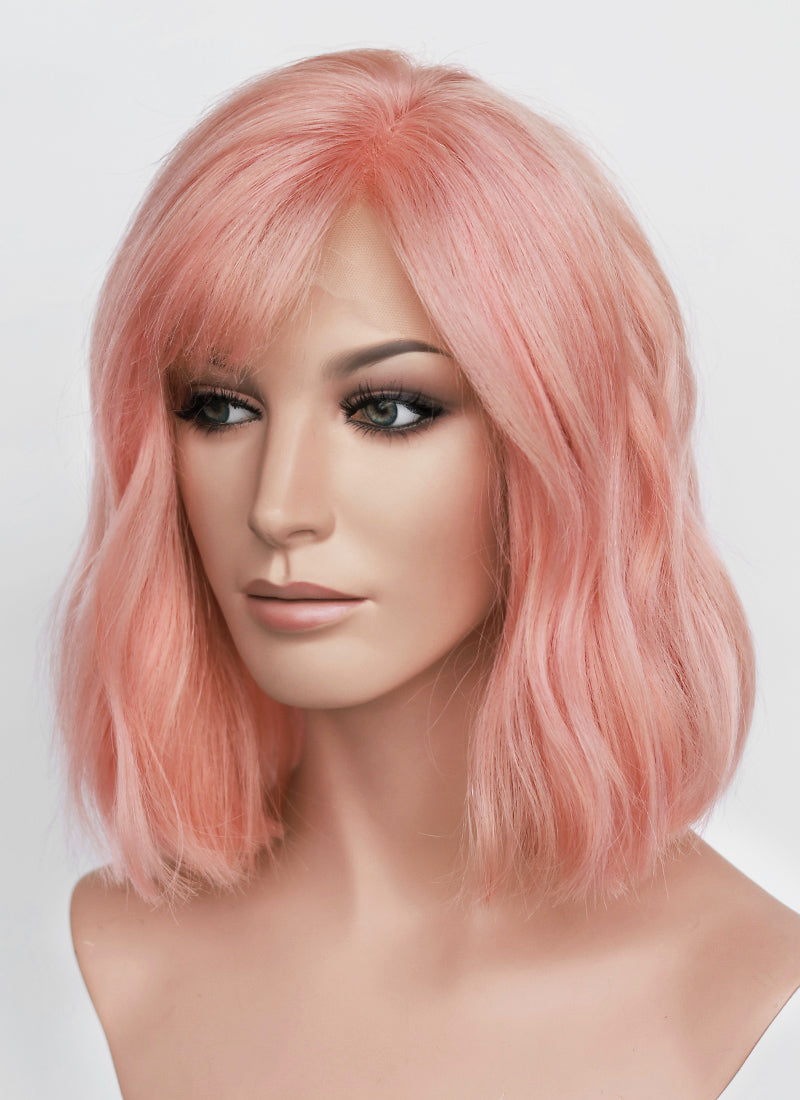 12" Medium Wavy Pastel Pink Lace Front Natural Hair Wig HHA013