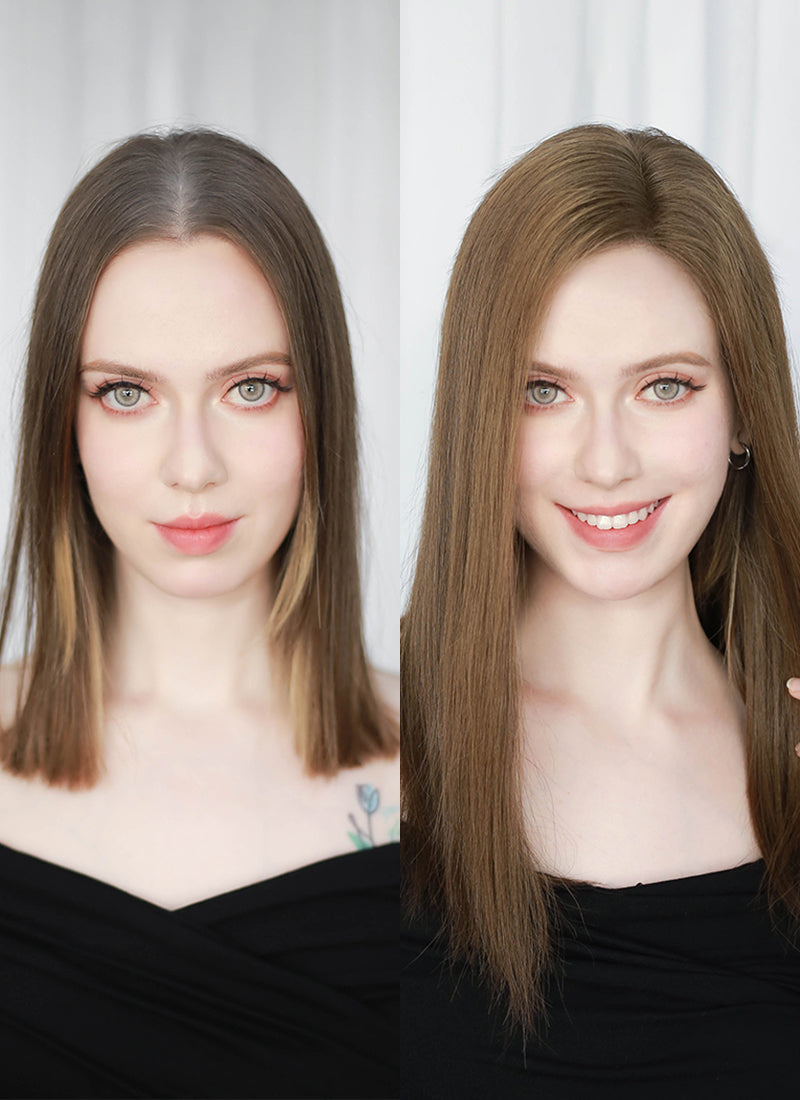 Engineered with advanced clip-in technology to instantly conceal thinning areas, this topper boosts crown volume while seamlessly masking root regrowth. Features a monofilament base integrated with biomechanical anchoring and gradient color-blending technology for undetectable wear and natural-flow styling.