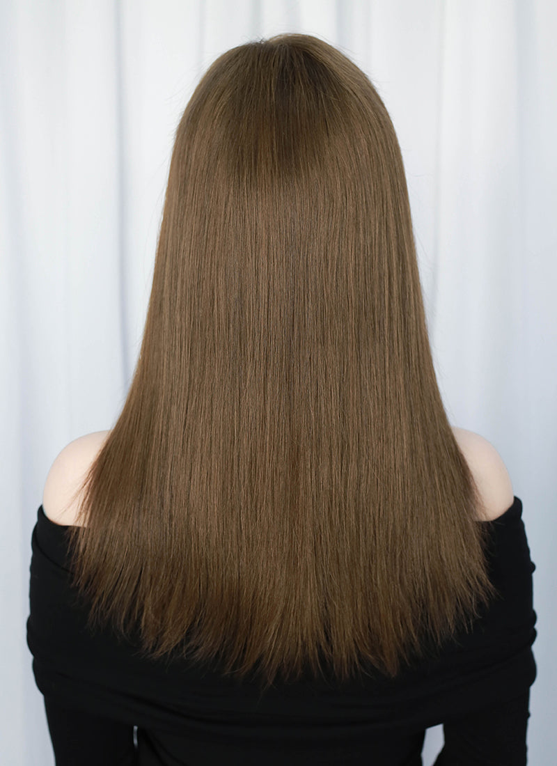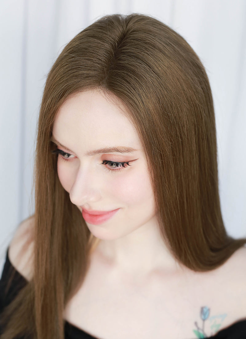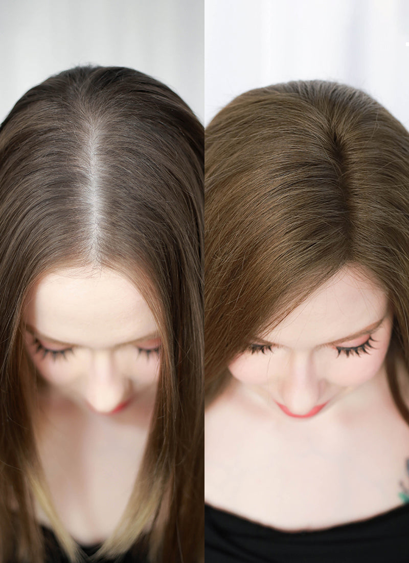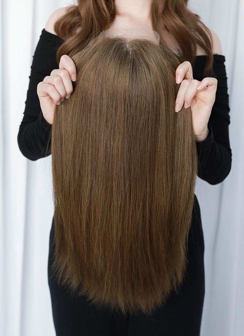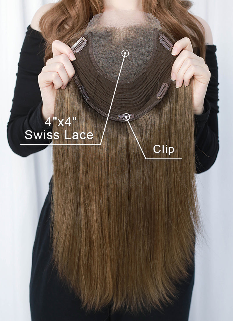 4" x 4" Swiss Lace+weft Straight Brunette With Dark Roots Remy Hair Women Topper HT002