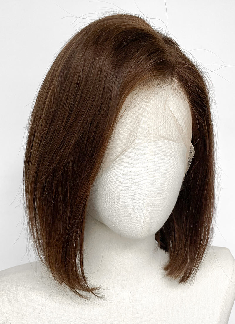 10" Medium Straight Chocolate Brown Bob Lace Front Remy Natural Hair Wig HH204