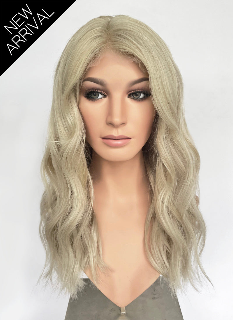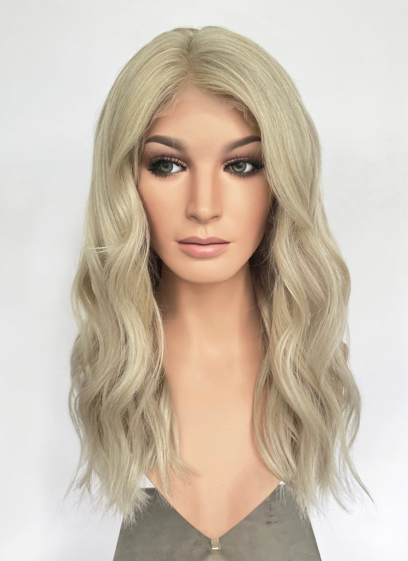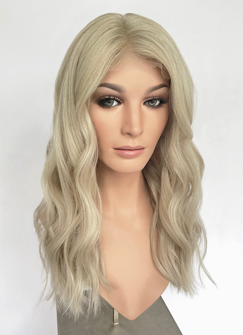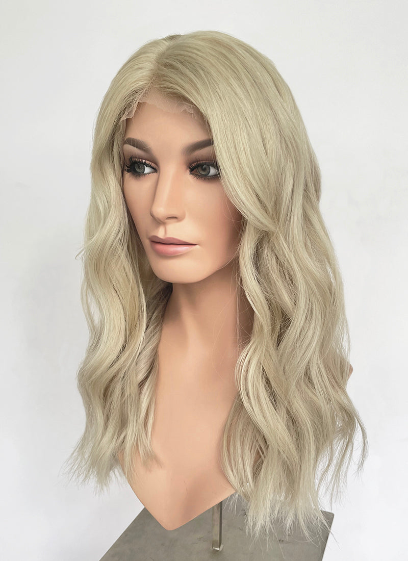 22" Long Wavy Ash Blonde Lace Front Natural Hair Wig HHA007
