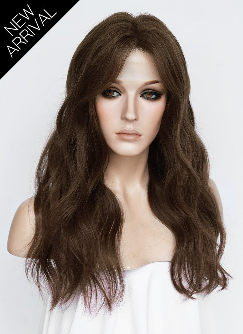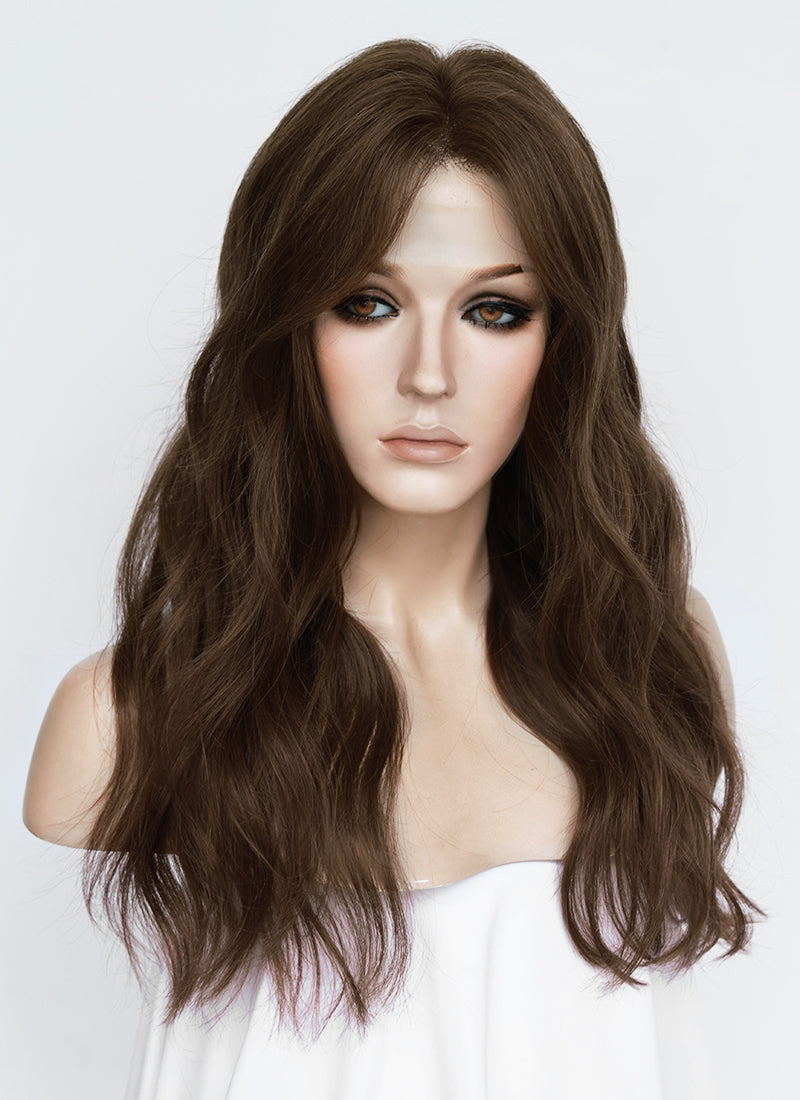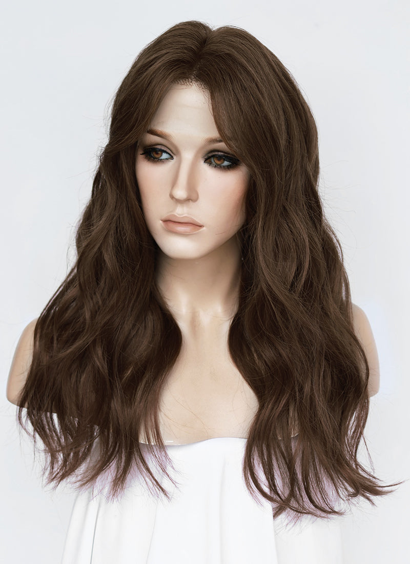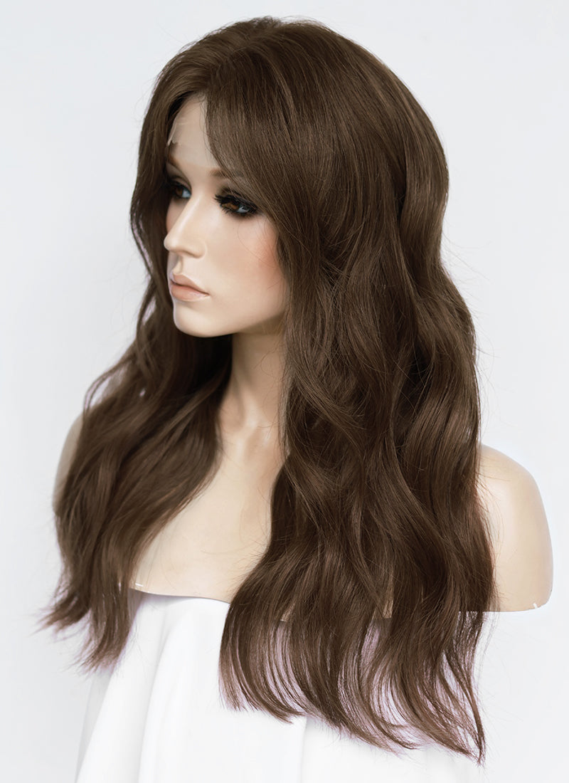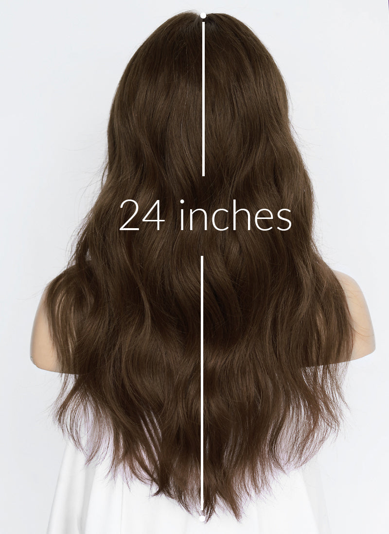 24" Long Wavy Brown Lace Front Natural Hair Wig HHA011