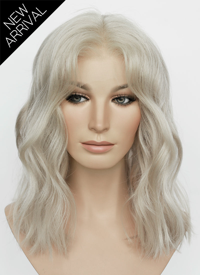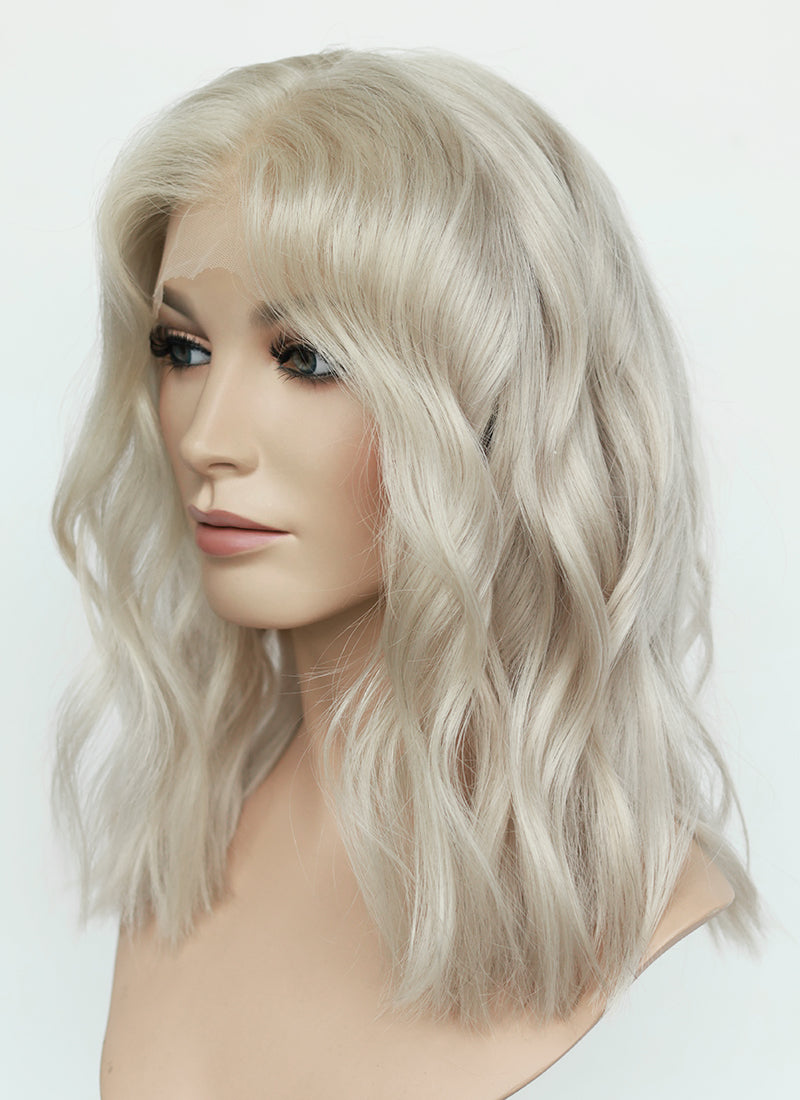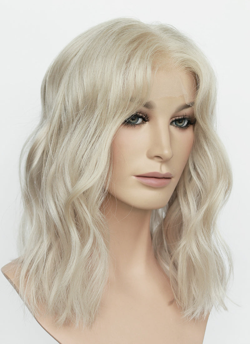 16" Medium Wavy Ash Blonde Lace Front Natural Hair Wig HHA014