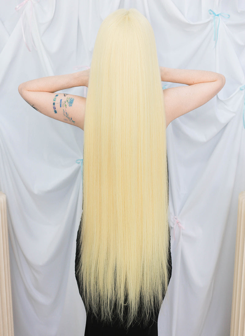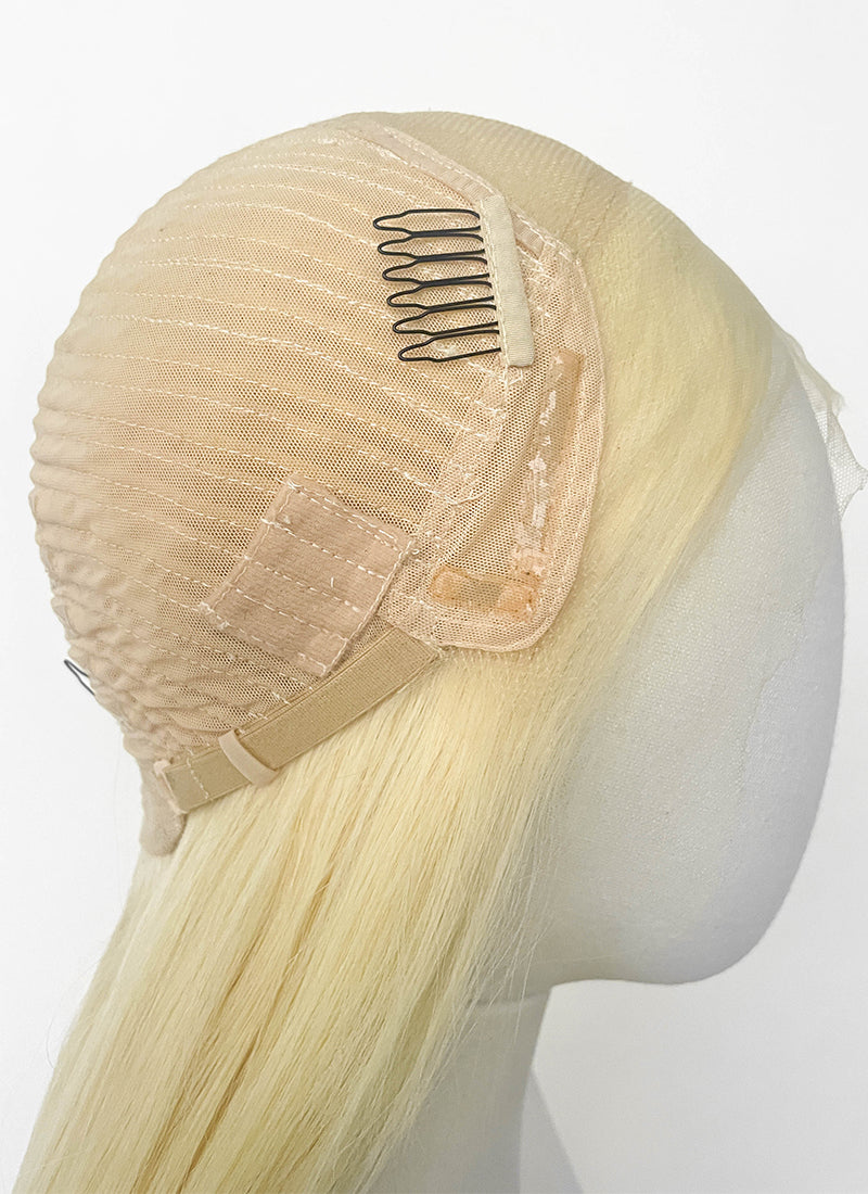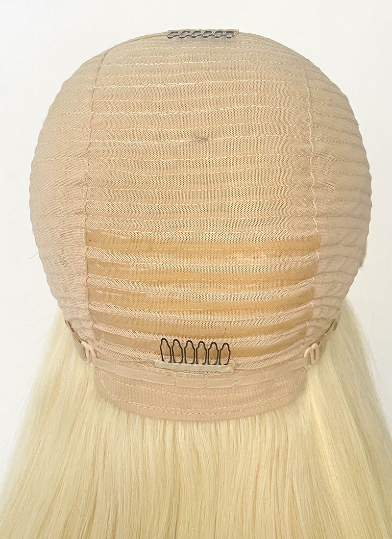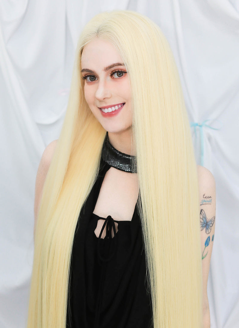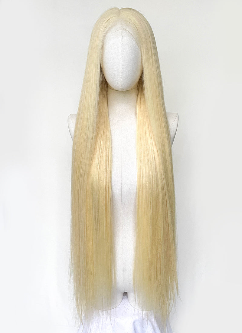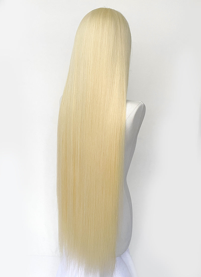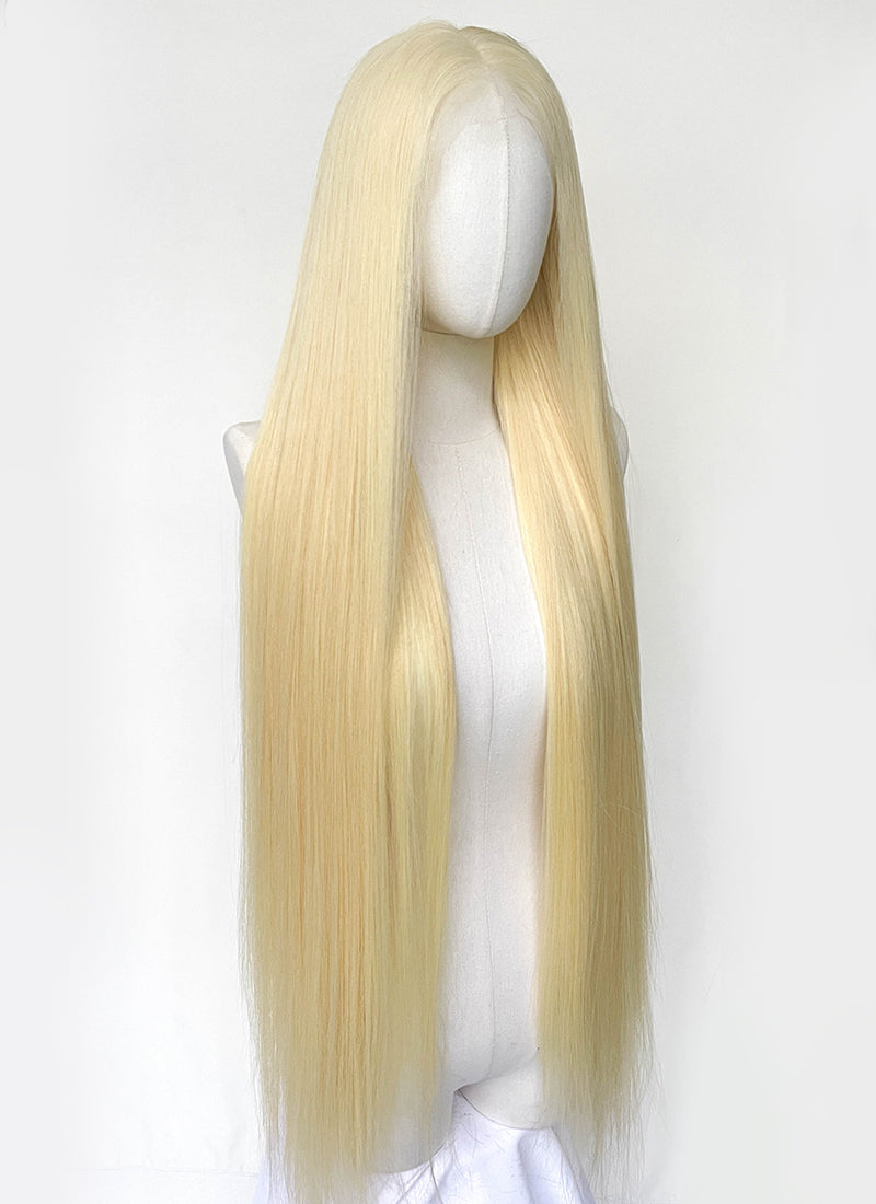 36" Extra Long Straight Bleach Blonde Lace Front Remy Natural Hair Wig HHW002