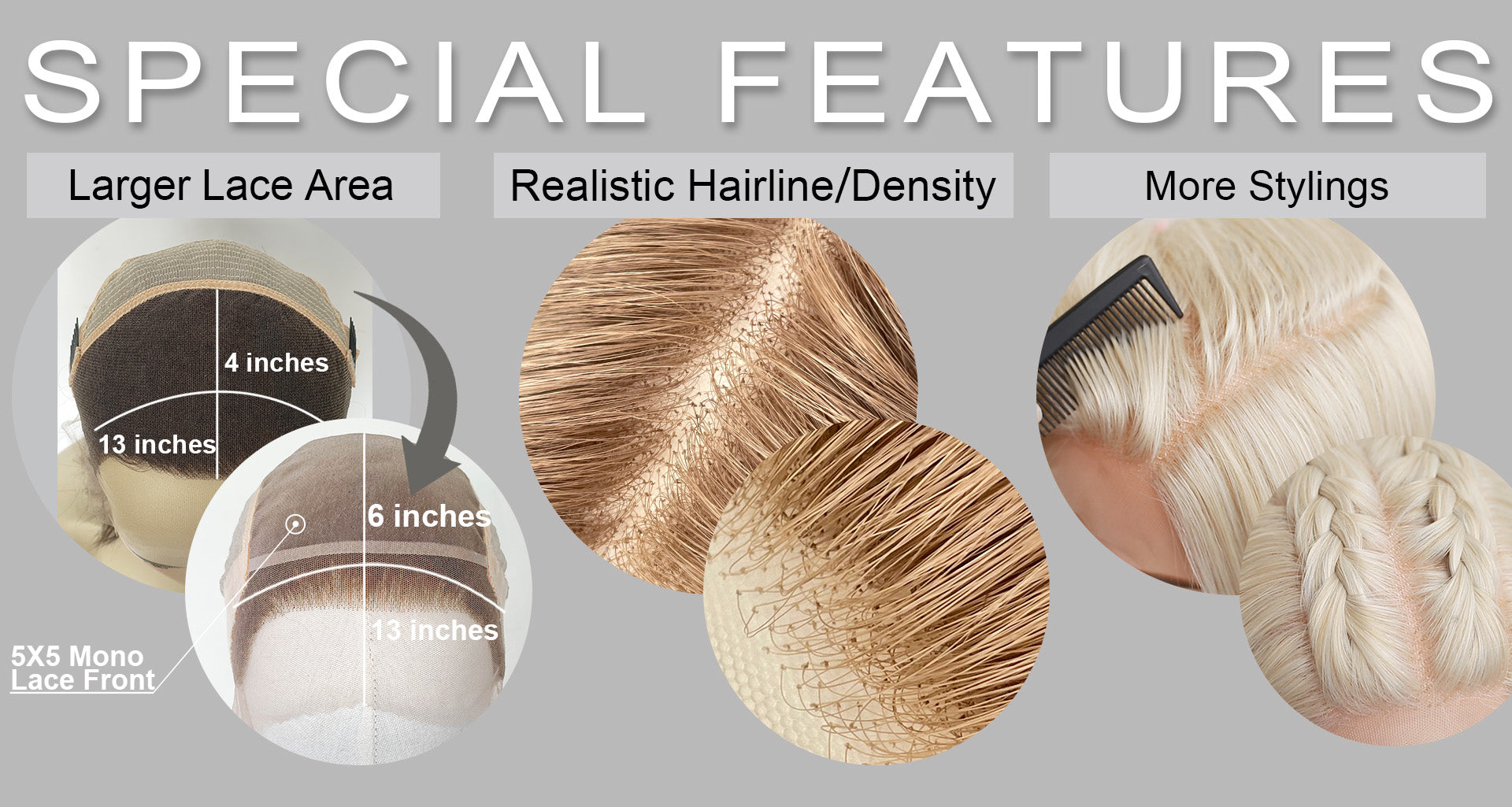 - Mono-Top Construction: Gives the impression of natural hair growth and allows for versatile parting in any direction.