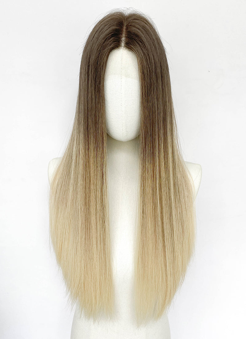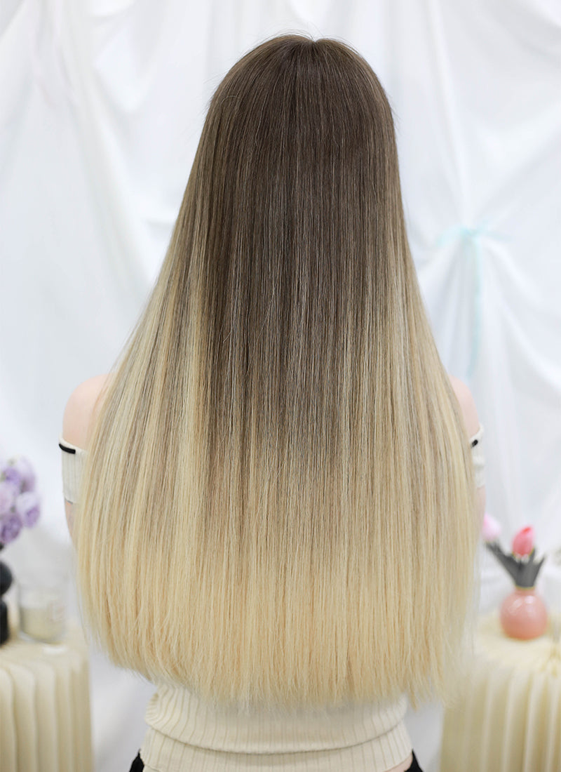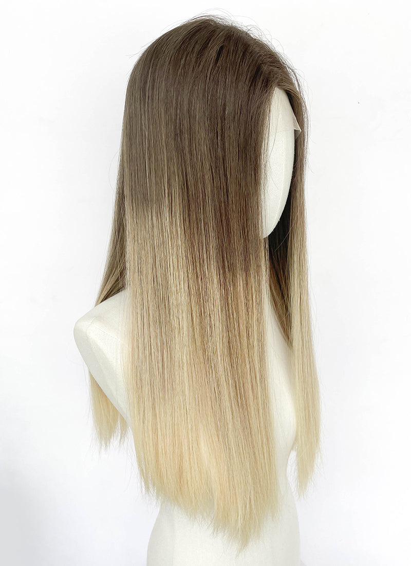 26" Long Straight Brown Blonde Ombre Lace Front With Silk Top Remy Natural Hair Wig HHW013