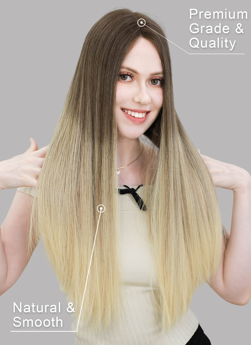 26" Long Straight Brown Blonde Ombre Lace Front With Silk Top Remy Natural Hair Wig HHW013