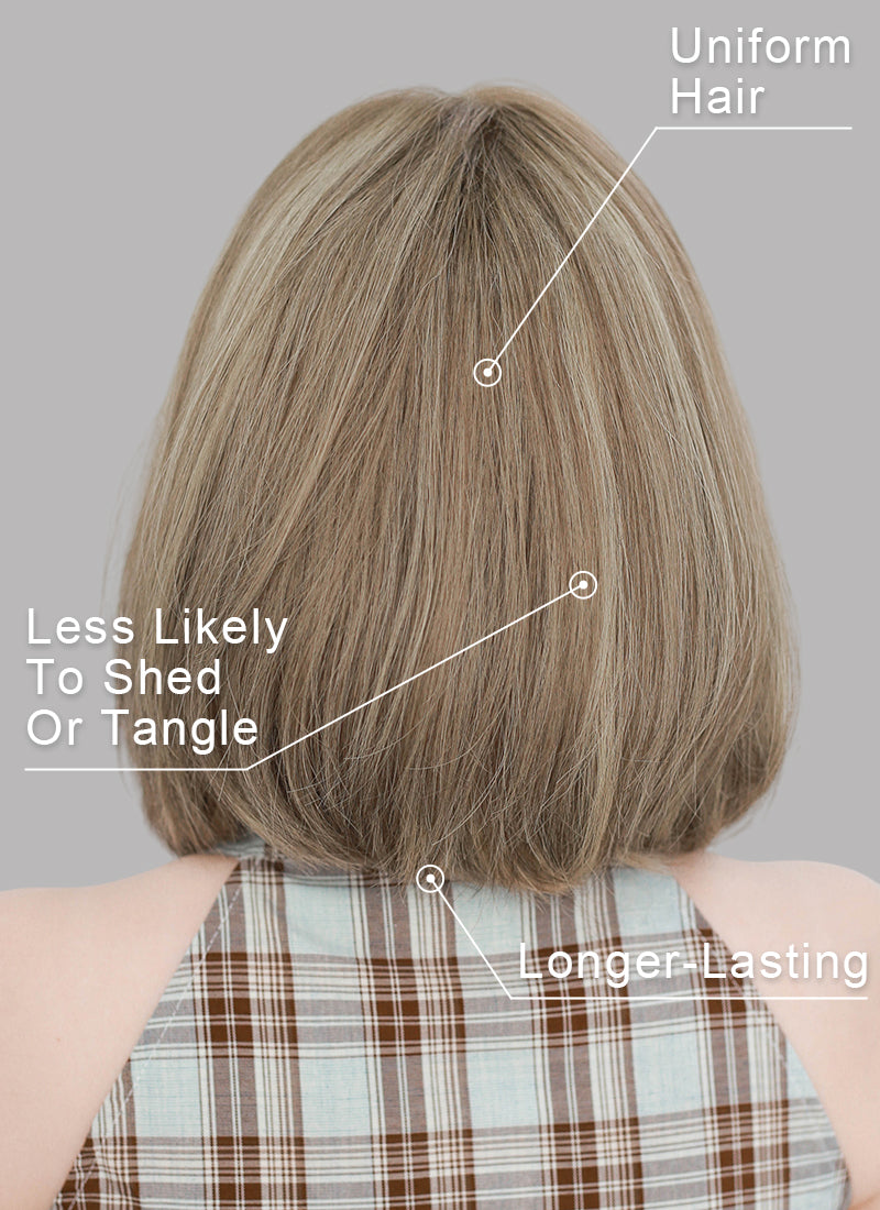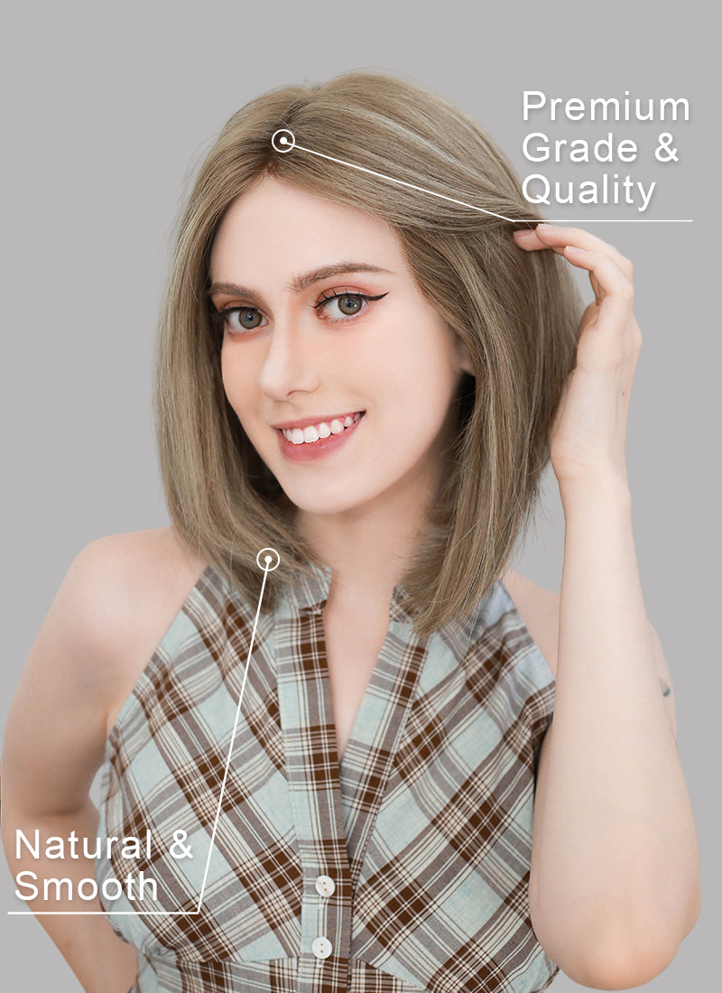 12" Medium Straight Classic Bob Blonde Balayage Lace Front Remy Natural Hair Wig HHW015
